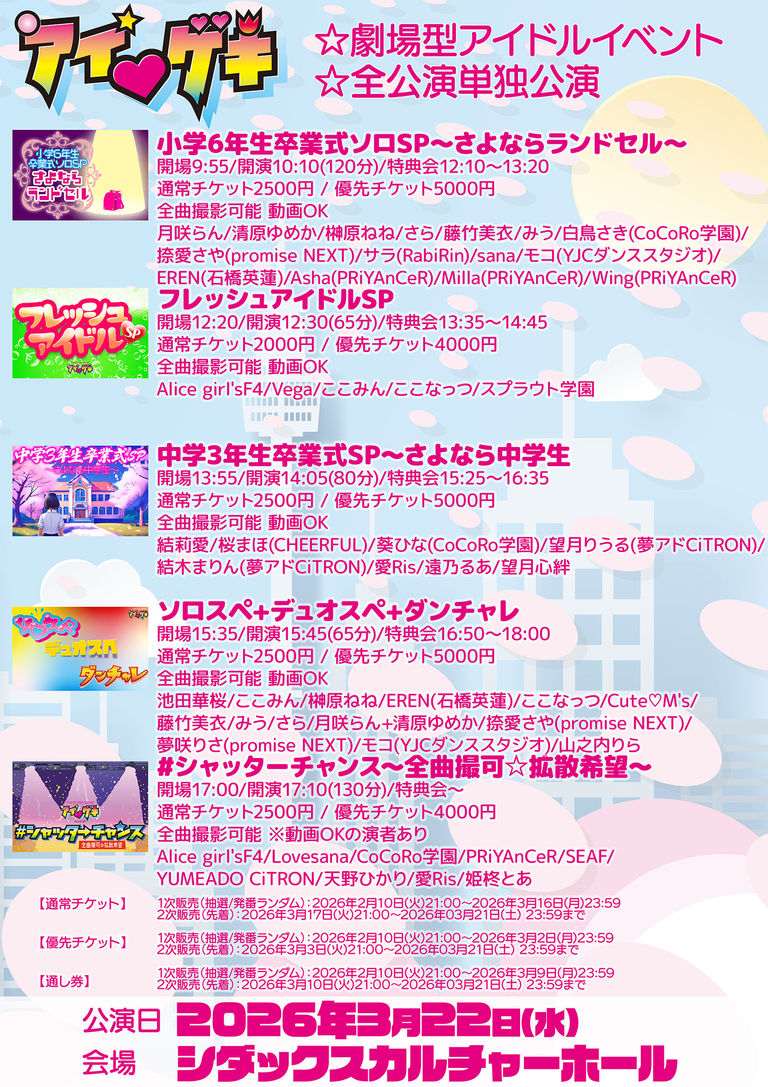 🎤 3/22(日) アイゲキ「小学6年生卒業式ソロSP~さよならラ ンドセル~」出演:sana